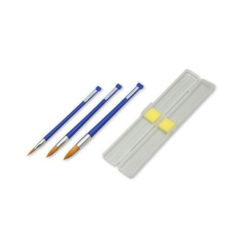 セット内容:アクア水彩ナイロン筆 小6号×1本(穂:19×径4mm、全長193mm)、アクア水彩ナイロン筆 大15号×1本(穂:28×径8mm、全長204mm)、アクア水彩ナイロン筆 特大20号×1本(穂:36×径10mm、全長216mm)、画筆箱小×1(250×30×20mm)
