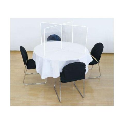店舗やオフィスのウイルス対策に!●十字型の4人用パーテーション\n●拡張性に優れており、6人用、8人用など\n 用途に応じてパーテーションを追加できます\n●透明度の高いPET素材でアルコールや\n 洗剤での清拭が可能\n●平たくたたんだ状態で保管できます\n●角R加工で、安心・安全\n\nアクリルより割れにくい!●2mm厚高透明度PET製●組立簡単●拡張OK\n\n単品パーツ追加で連結できます\n6人がけ、8人がけにも!商品サイズ(単位mm):1100×1100×550