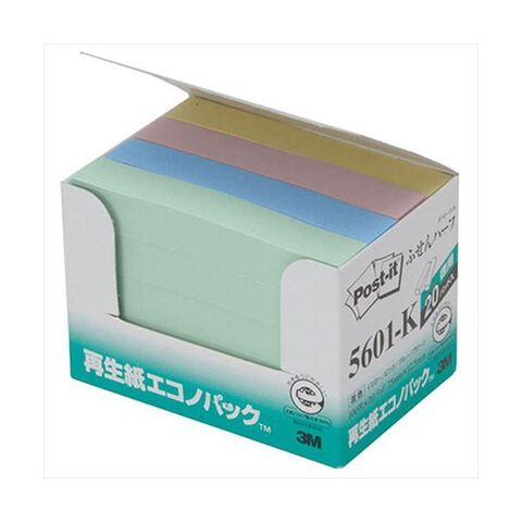 3M-5601-KX5 直送 代引不可 5個セット 3M Post-it ポストイット 再生紙エコノパック ふせんハーフ 3M5601KX5