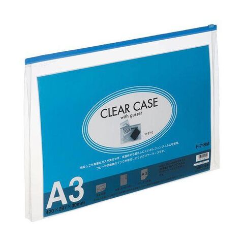 F-71SM-11-NVX5 直送 代引不可 5個セット LIHIT LAB. クリヤーケース ヨコ型 マチ付 A3S 藍 F71SM11NVX5