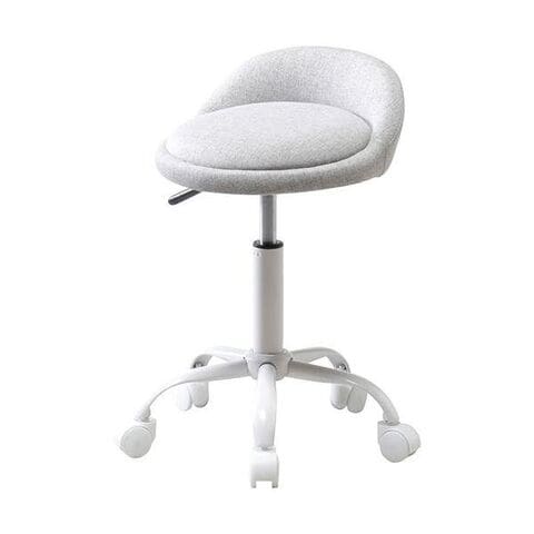 キャスターの付いた可愛いファブリックのチェア。背もたれが低いので机の下に入れ込むこともでき、圧迫感も少なくなっています。デスク前からキッチン周りなどいろいろな場所で活躍します。