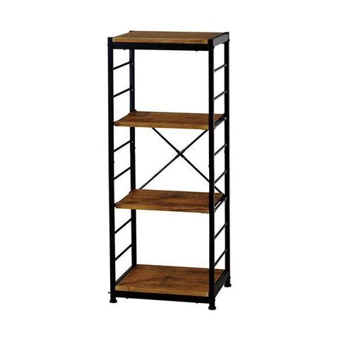 木目をリアルに再現したPVCを使用し、スチールフレームを組み合わせたシリーズ。古木調の天板がヴィンテージな雰囲気。細い部材で構成されているので圧迫感が少ない。通常タイプとスリムタイプ合わせて6種類のサイズがあり、棚板は115mmごとに高さ調節が可能なので様々な生活に合わせることが可能。