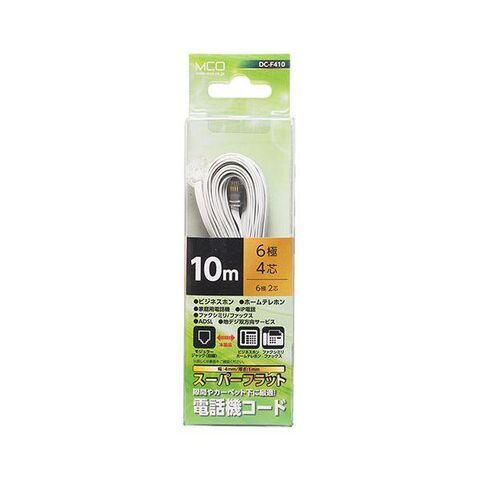 【個数:1個】DC-F410/WH 直送 代引不可 ミヨシ 電話機コード 6極4芯 10m 白 フラット DCF410/WH