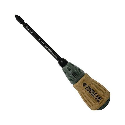 ジオン公国軍のメカニック達がモビルスーツの整備に愛用したドライバーをモチーフにした、差し替え式2WAYドライバー。