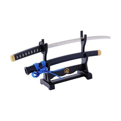 刀剣乱舞-ONLINE-山姥切長義をモチーフとしたペーパーナイフ。鍔に雲、山、桜が描かれているのが特徴的。刃紋は互の目乱れ刃紋形状、掛台には山姥切長義の紋をあしらうなど、細部までゲーム設定を再現している商品です。