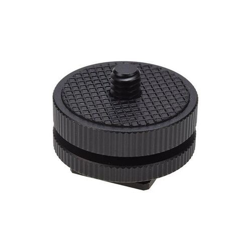カメラのアクセサリーシューに三脚用の1/4インチ対応のアクセサリーを取り付け可能にするアダプター。