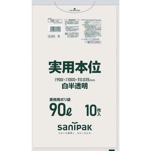 サニパック [NJ99] ゴミ袋 業務用実用本位 90L白半透明 NJ-99 335-7261