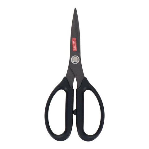 ●フッ素加工だからべたつかず、ギザ刃付きだからすべらないはさみです。