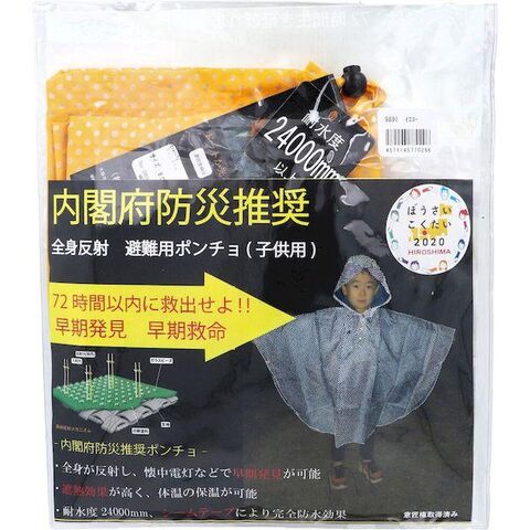 4571145770296 全身反射 レインポンチョ 子供用80cm イエロー【キャンセル不可】