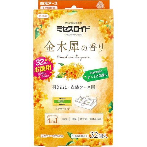 4902407120489 ミセスロイド 防虫剤 引き出し・衣装ケース用 1年間有効 金木犀の香り 32個入【キャンセル不可】