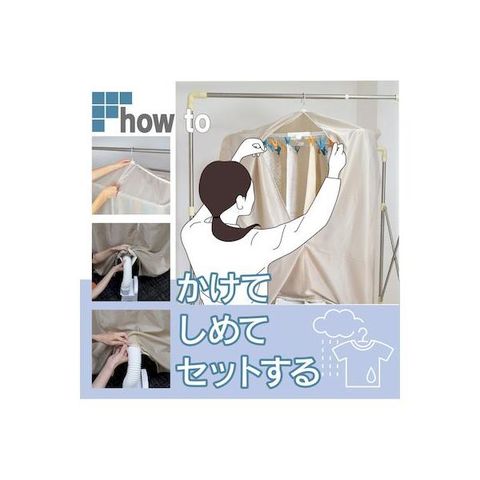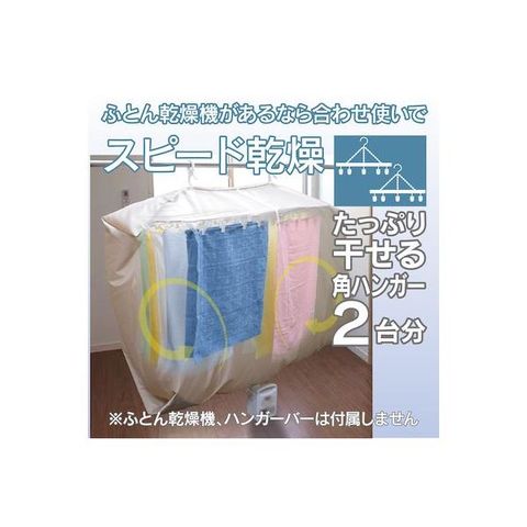 ●周囲が210cm以内の角ハンガーや8連ハンガー等を2台並べた後、本品を被せてお手持ちの布団乾燥機をセットして使用します。