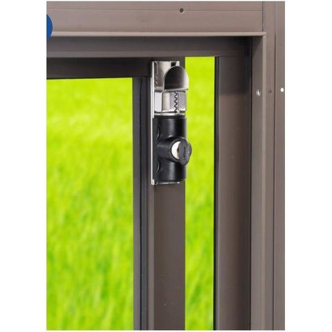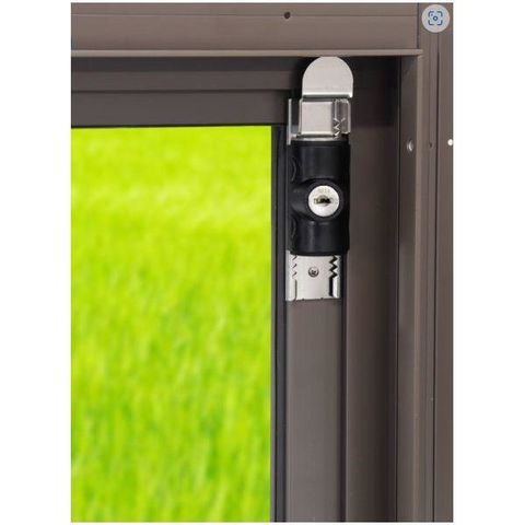 ●鍵を回して本体を移動し、窓枠を当てることで窓の開閉を抑止。
