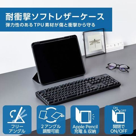 ●弾力性と硬さをあわせ持つTPU素材が傷や衝撃を和らげる、13インチiPad Air(M2)用ソフトレザーケースです。機器本体のスリムなフォルムを損ねずに保護します。