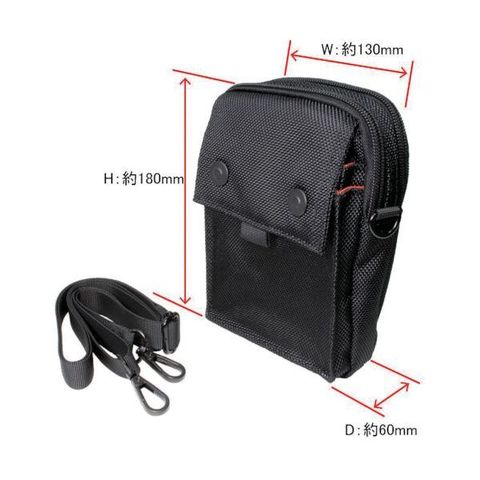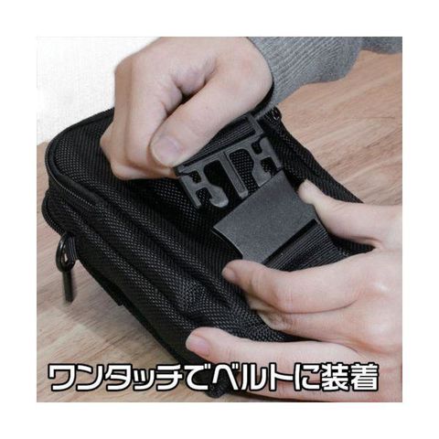 【特長】●ジッパーや面ファスナーが付いた複数のポケットにより、小物を小分けに収納できるポーチです。●ベルトに通してウェストポーチとして使用できる他、ショルダーベルトが付属しているので、肩掛けのポーチとしても使用できます。