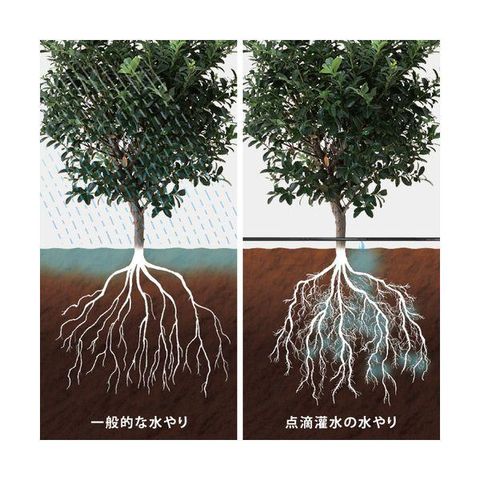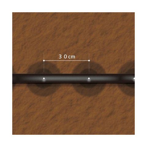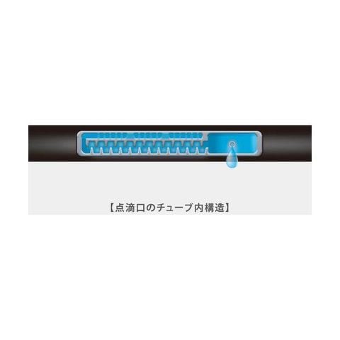 【特長】●植物の根元に設置し、点滴吐水でゆっくり水やり出来ます。●30cm毎に点滴穴が有り、約2~4L/h(1穴)の吐水量があります。●チューブの先端まで均一に吐水します。●点滴口は流路内で乱流がおこる為、目づまりを防止します。