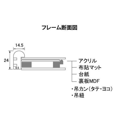 ●色紙用の隅丸の和額です。●布貼マットの内側に一般的な色紙の大きさ、八寸九寸(242×273)の色紙が入ります。