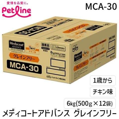 ペットライン MCA-30 メディコートアドバンス グレインフリー 1歳から チキン味 6kg(500g×12) MCA30