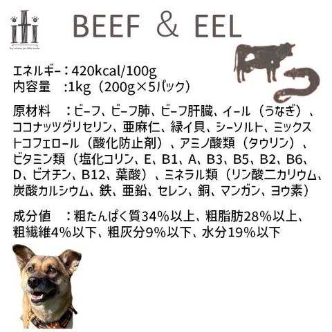 0763769047586 イティドッグ ビーフ&イール うなぎ ディナー 1kg 200g×5