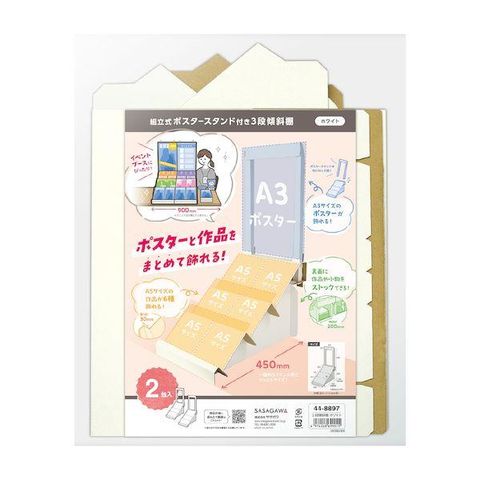 ササガワ タカ印 44-8897 組立式ポスタースタンド付き傾斜棚ホワイト 448897 2入