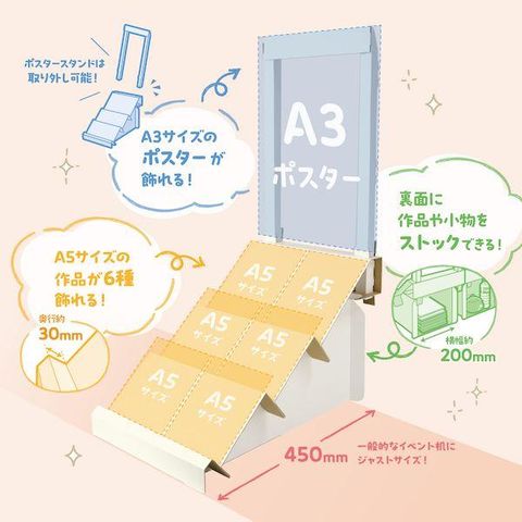 ●上部にポスタースタンドの付属パーツをセットするとA3サイズのポスターを飾ることができます。組立式なのでコンパクトに運ぶことができます。