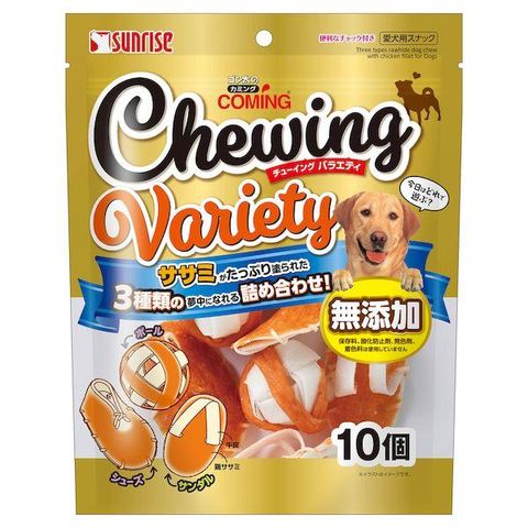 ●鶏ササミと牛皮を使用したくつ型、ボール型、サンダル型の3種が入った牛皮ガムのバラエティパックです。