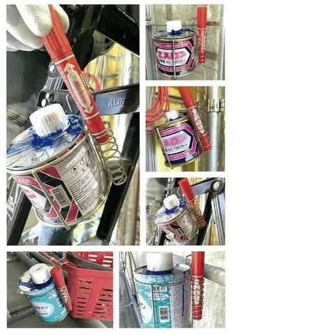 ●脚立や足場、腰回りのカラビナなど、塩ビ管接着剤や塗料缶を保持することが可能です。
