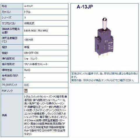 商品によっては納期にお時間がかかるものもございますので、お急ぎの場合はご注文前にメールにてご確認ください。日本開閉器工業 A13JP