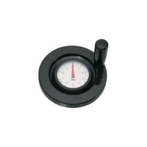 | 材質/仕上げ | ●ハンドル車:フェノール樹脂 ブラック ●握り:フェノール樹脂 ブラック ●インサート:SUM22L 黒染め ●インジケーター:ポリアミド つや消しブラック ●文字盤:アルミニウム(A1050P) ●長針:赤色 ●短針:黒色 |