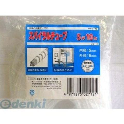 オーム電機 GST-4 スパイラルチューブ 内径5mm 長さ10m 白 GST4 GST-4 φ5mm