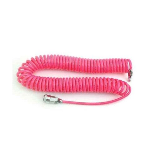 伸ばして作業ができ、縮めて収納できる伸縮で邪魔にならないコイル状のエアホースです。