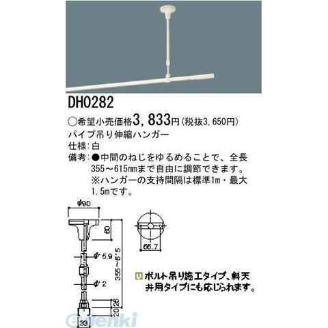 パナソニック電工 Panasonic DH0282 パイプ吊り伸縮ハンガー 白 DH0282 ホワイト 施設照明