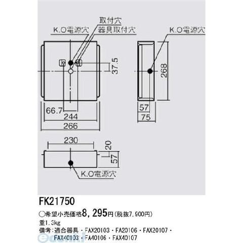 パナソニック電工 Panasonic FK21750 誘導灯コンパクトスクエア用取付ボックス FK21750 誘導灯用取付ボックス