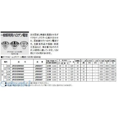 パナソニック電工 ダイクール電球 JR12V35WKW/3 (広角)