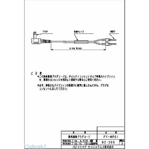 パナソニック電工 Panasonic FY-WP01 パイプファン FYWP01 ダイレクトコンセント用コード 換気扇部材