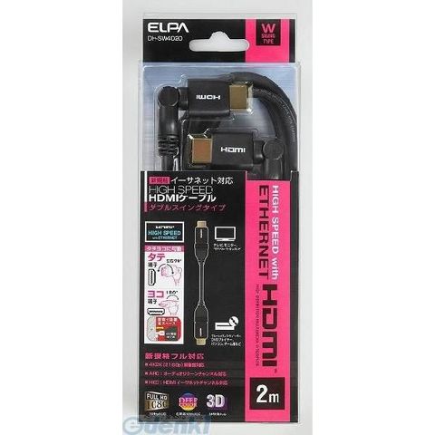 【納期:約1週間】朝日電器 ELPA DH-SW4020 WスイングHDMIケーブル 2.0M DHSW4020 エルパ