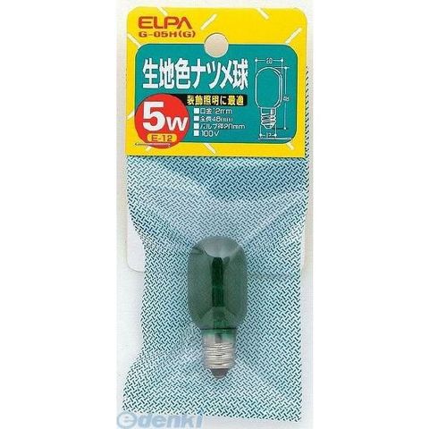 【納期:約1週間】朝日電器 ELPA G-05H-G キジショクナツメキュウ 5W G05HG 生地色ナツメ球5W グリーン