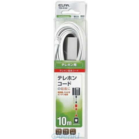 【納期:約1週間】朝日電器 ELPA TEW-E100 TELエンチョウ6キョク2/4 10M TEWE100 テレホン延長コード