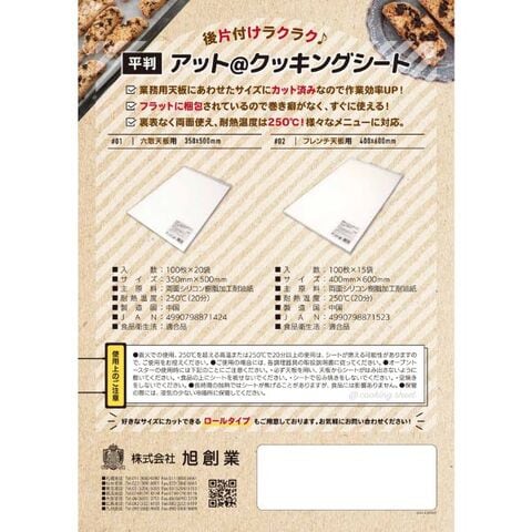 【法人様限定】旭創業 平判アットクッキングシート 400×600mm 100枚×15袋入 3ケースロット【メーカー直送・代引き不可・時間指定不可・沖縄、北海道、離島不可】