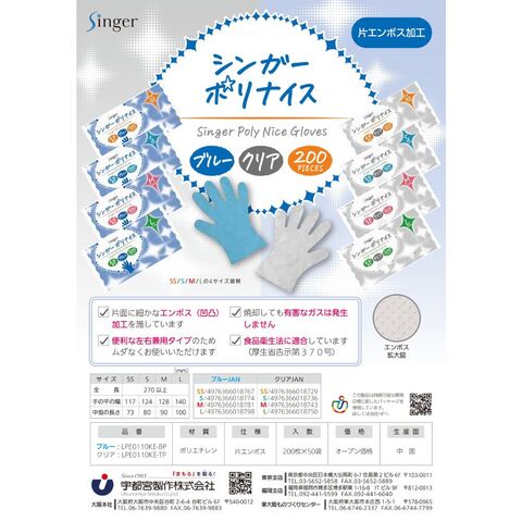 宇都宮製作 シンガーポリナイス ブルー 袋入 Lサイズ 200枚×50袋【取り寄せ商品・即納不可・代引き不可・返品不可】