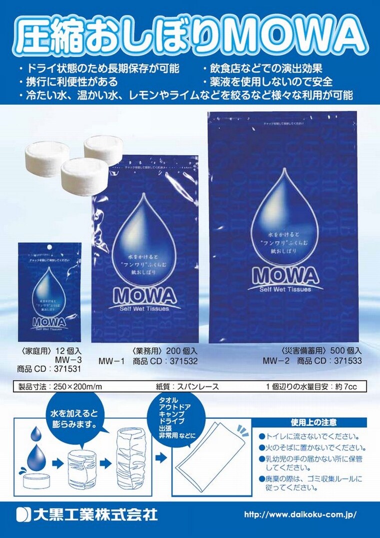 | 商品名 | 圧縮おしぼりMOWA 災害備蓄用 |