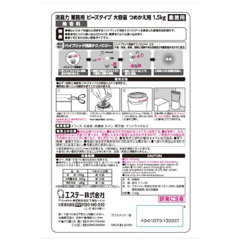 ●商品名:業務用 エステー 消臭力 ビーズタイプ 無香料 つめかえ
