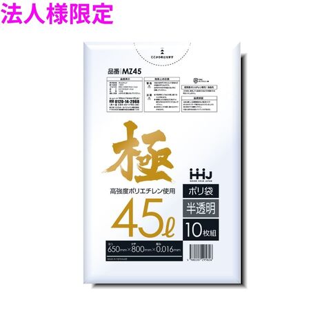 【法人様限定】ポリ袋 45L LL+Meta 0.016×650×800mm 半透明 10枚×120冊(1200枚) MZ45 3ケースロット【メーカー直送・時間指定不可・沖縄、離島不可】
