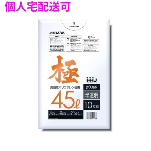 【個人宅配送可】ポリ袋 45L LL+Meta 0.019×650×800mm 半透明 10枚×100冊(1000枚) MZ46【取り寄せ商品・即納不可・代引き不可・返品不可】