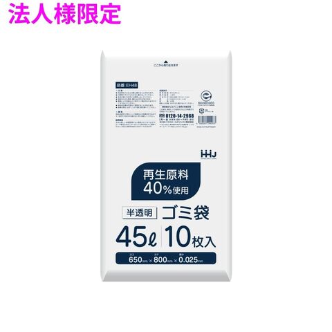 【法人様限定】ポリ袋 45L HDPE 0.025×650×800 半透明 10枚×80冊(800枚) EH48 3ケースロット【メーカー直送・時間指定不可・沖縄、離島不可】