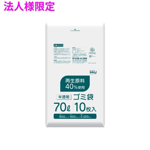 【法人様限定】ポリ袋 70L HDPE 0.02×800×900 半透明 10枚×60冊(600枚) EH73【メーカー直送・時間指定不可・沖縄、離島不可】