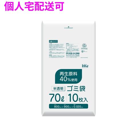 【個人宅配送可】ポリ袋 70L HDPE 0.02×800×900 半透明 10枚×60冊(600枚) EH73【取り寄せ商品・即納不可・代引き不可・返品不可】
