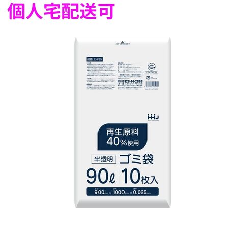 【個人宅配送可】ポリ袋 90L HDPE 0.025×900×1000 半透明 10枚×40冊(400枚) EH95【取り寄せ商品・即納不可・代引き不可・返品不可】