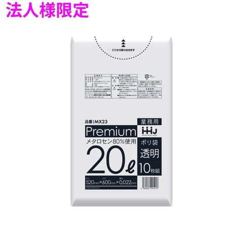 【法人様限定】ポリ袋 20L LL+Meta 0.022×520×600 透明 10枚×120冊(1200枚) MX23【メーカー直送・時間指定不可・沖縄、離島不可】