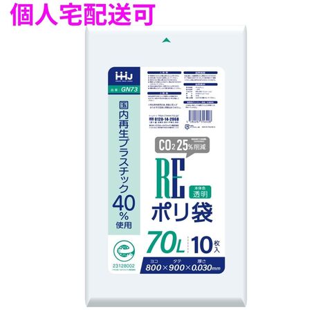 【個人宅配送可】国内再生プラスチック40%使用 ポリ袋 70L LLDPE 0.03×800×900 透明 10枚×50冊(500枚) GN73【取り寄せ商品・即納不可・代引き不可・返品不可】
