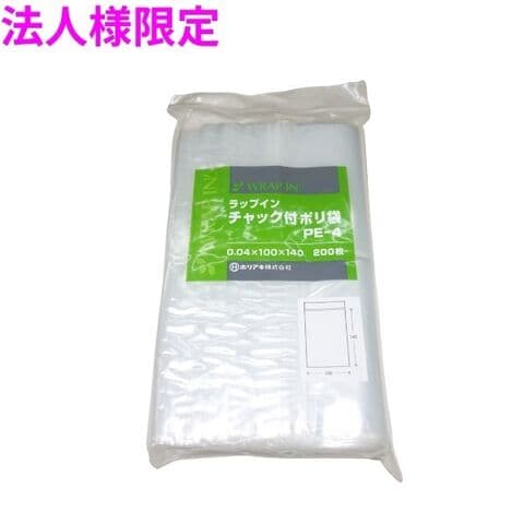 【法人様限定】ラップインチャック付ポリ袋 PE-4 0.04×100×140mm 200枚×10袋×4小箱入(8000枚) 5ケースロット【メーカー直送・代引き不可・時間指定不可・沖縄、北海道、離島不可】
